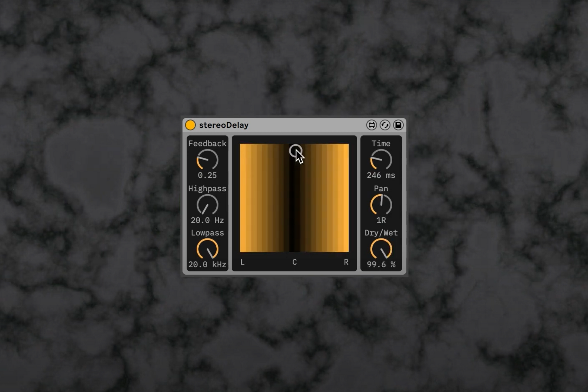 Stereo Delay is a max4live device for creative sound design and exploration of feedback in the stereo field. Through an XY grid controller, the original signal and two discrete feedback loops can be mixed or separated between left and right channels.